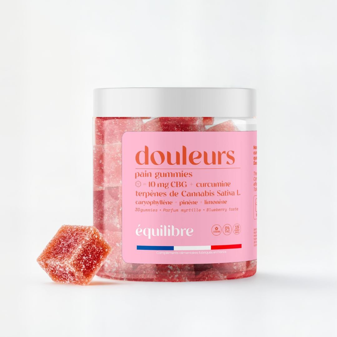 - Le CBG est un cannabinoïde aux propriétés anti-inflammatoires, tandis que la curcumine est l’ingrédient actif du curcuma, connu pour ses effets similaires. Nos bonbons DOULEUR sont donc un concentré de bienfaits qui vous aide à soulager vos douleurs qu’elles soient articulaires, musculaires, neuropathiques, ou liées à l’inflammation chronique. Le CBG a aussi des propriétés neuroprotectrices, il peut donc être un allié contre les maladies dégénératives comme la maladie de Parkinson par exemple.De plus, chaque bonbon est enrichi aux terpènes provenant du Cannabis Sativa L.?
